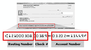The order of the routing and transit number, check number, and account number may vary by financial institution.